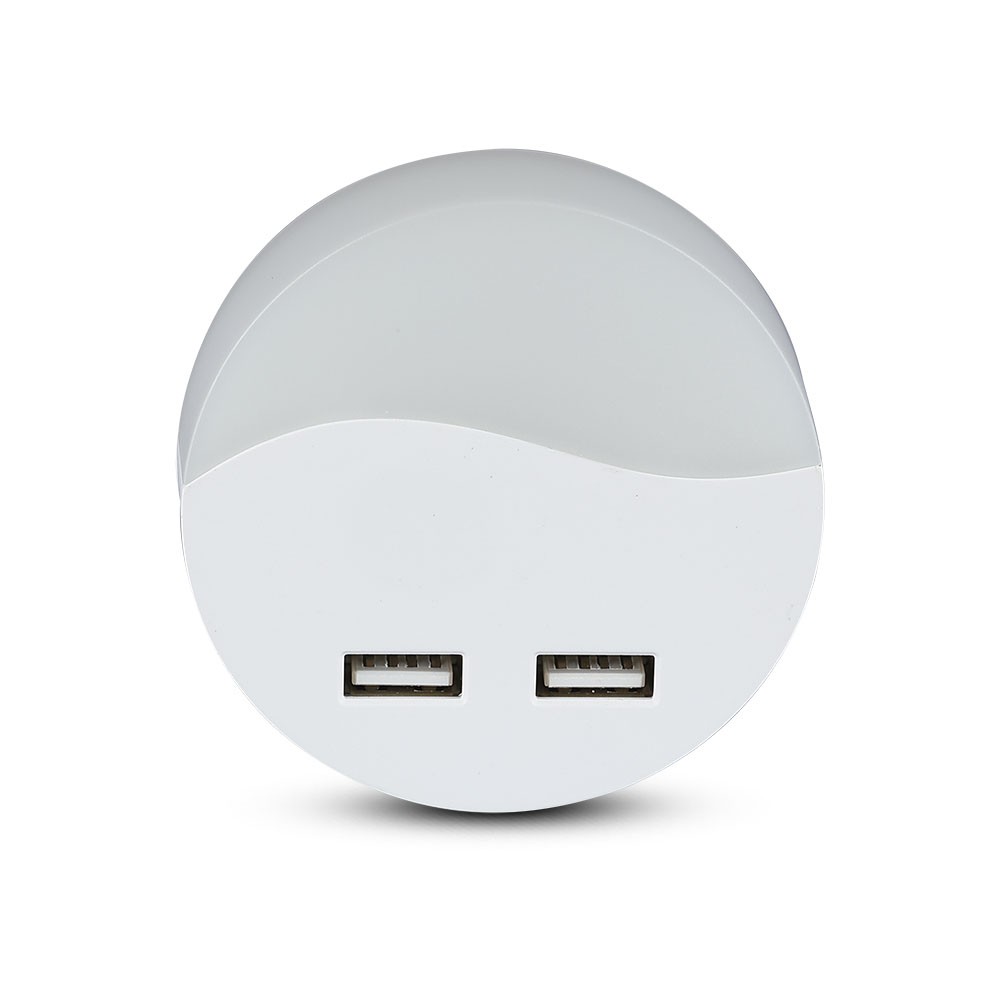0,45W Natlampe med USB – Rund, 3000K, Automatisk tænding ved mørke, Samsung LED Chip – Kulør : Varm